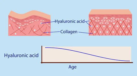 Първите признаци на стареене са загубата на обем и еластична тъкан или еластин в кожата, което причинява фини линии, бръчки около очите, вдлъбнати очи и отпускане на кожата, особено около устата и челюстта. Тези промени стават по-забележими с напредването на възрастта и по-нататъшната загуба на подкожния слой мастната тъкан между кожата и мускулите.