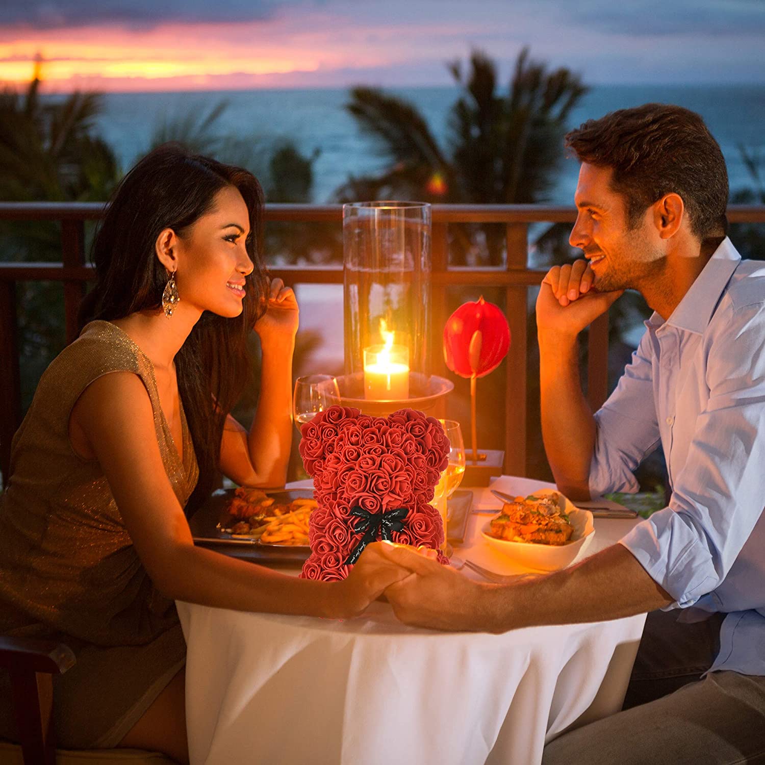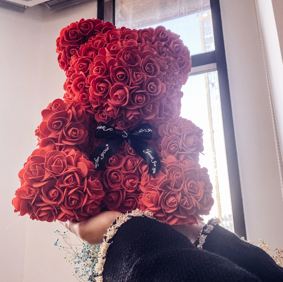 Точно като любовта ви, розите на мечето ще останат завинаги, защото никога няма да увехнат.