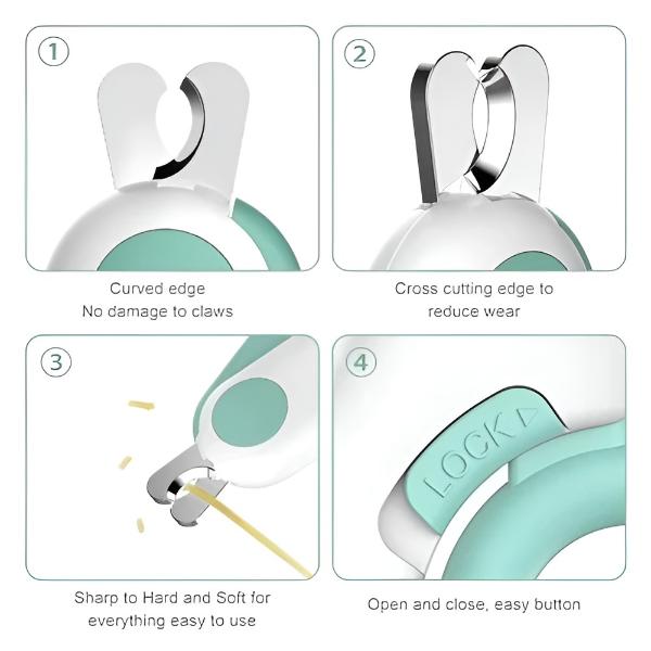 Вградената LED светлина ясно осветява ноктите на домашния ви любимец, като ви помага да избегнете наранявания, показвайки точната позиция на рязане.