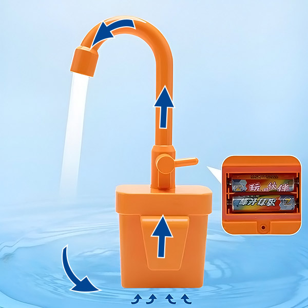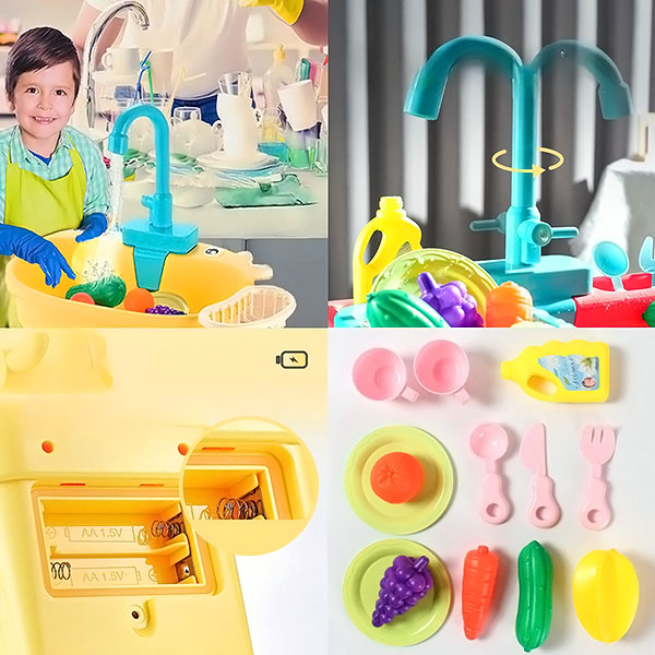 Ергономичният дизайн е идеален за малки деца, с кранче, което се управлява лесно, и настройка, която е лесна за управление. С натискането на един бутон децата могат да активират водния поток и да започнат своята игра. Това е чудесен начин те да овладеят основни кухненски задачи, като същевременно подобряват координацията между ръцете и очите и фината моторика.