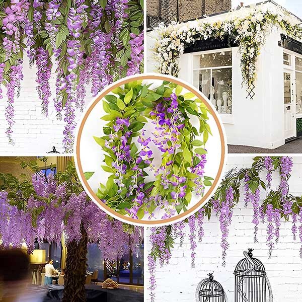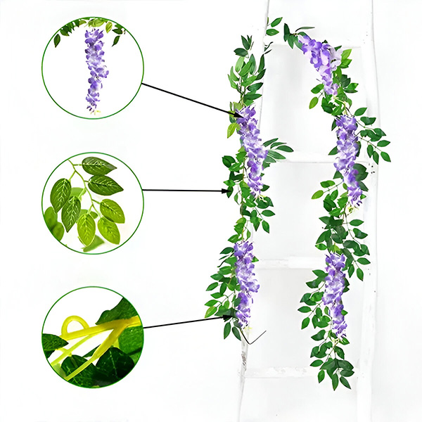 Уморени сте да поддържате истински цветя, които увяхват и избледняват? WISBLOOM е имитация на цветя от глициния с листа от бръшлян, които внасят докосване на естествена красота в пространството ви без проблеми. Тези живи, реалистични висящи цветя остават свежи и цветни година след година, като гарантират, че градината или домът ви винаги ще изглеждат зашеметяващо.
