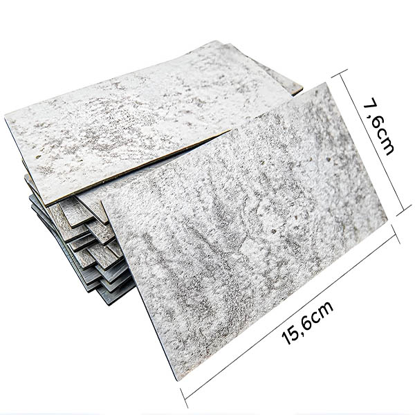 Правоъгълната форма (15,6 x 7,6 см) позволява да се използват различни атрактивни модели. Всяка опаковка от 10 плочки покрива около 0,12 квадратни метра, което е идеално за творчески дизайн.