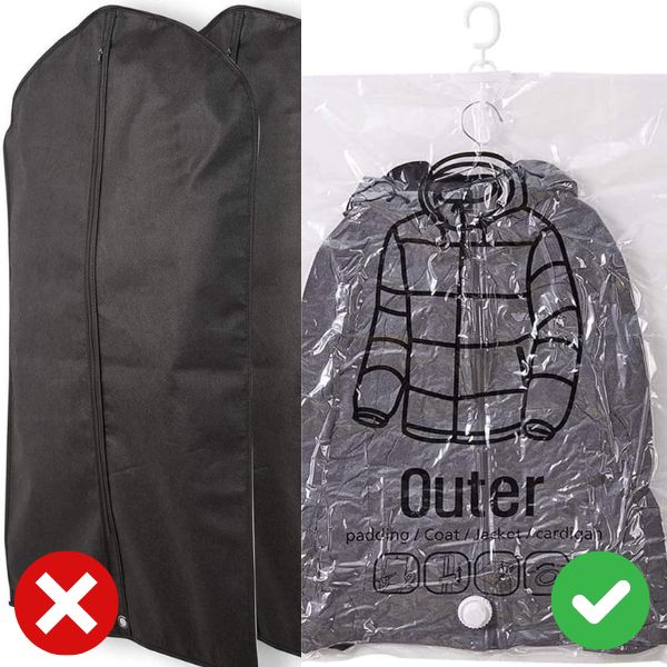 Избягвайте неприятното отваряне на пликове, за да намерите дрехите. Ясният и прозрачен дизайн на VACUHANG позволява лесно да видите какво има вътре, без да ги отваряте. Тази функция, в комбинация с куките за закачалки, позволява бърз и удобен достъп до съхраняваните от Вас вещи.