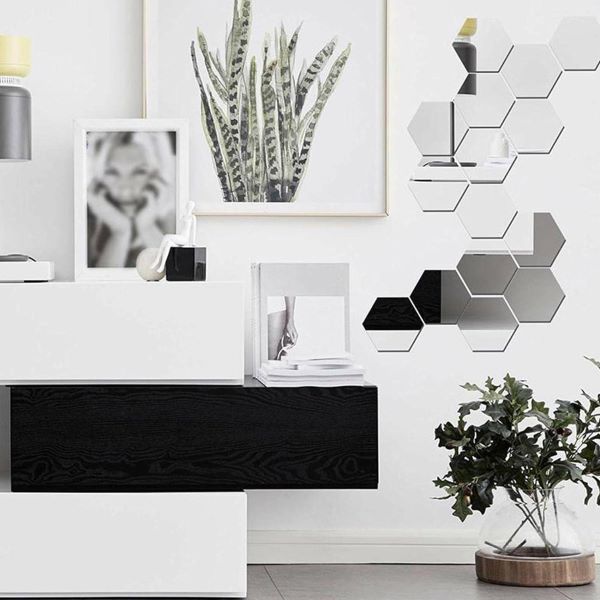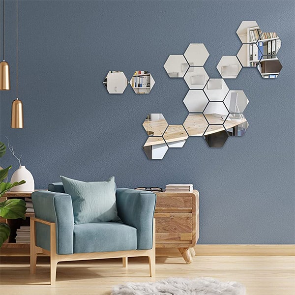 Самозалепващите се шестоъгълни огледални стикери са декоративно допълнение, което незабавно подобрява външния вид на дома ви. Това е достъпен и елегантен начин да украсите стените си.