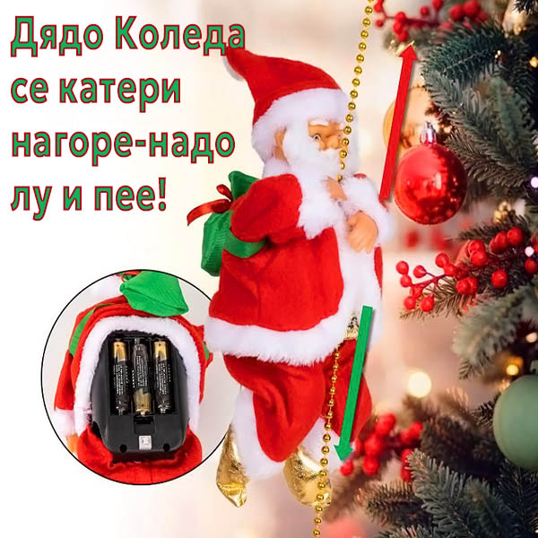 Дядо Коледа се изкачва и слиза по въженце, внасяйки Коледни мелодии и празнично настроение в дома ви. Идеален за партита и събирания.