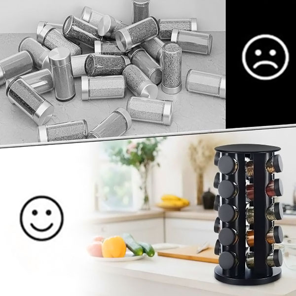 Съхранявайте подправките си подредени и лесни за намиране, спестявайки ви ценно място и време при готвене.