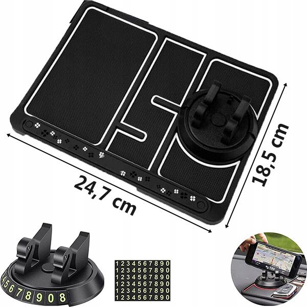 📏 Универсална съвместимост: С размери 24.7 x 18.5 см, тази постелка се вписва безпроблемно на всяко автомобилно табло, осигурявайки плътно и сигурно поставяне.